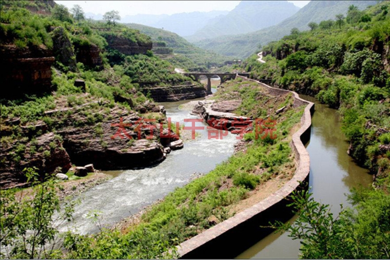 紅旗渠渠源位于山西省平順縣石城鎮(zhèn)候壁斷下,距離青年洞24.5公里。民工們?cè)谶@里鑄了一條攔河大壩,攔腰斬?cái)嗾暮铀?,逼水上山,引入林縣。
