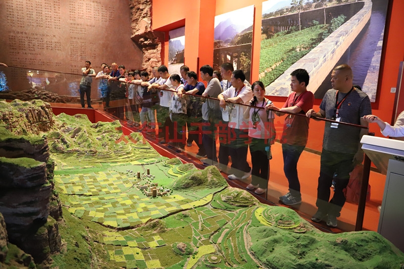 紅旗渠紀(jì)念館不僅是一座以研究、展示、傳承、收藏紅旗渠歷史的一座展館。也是我們學(xué)員感悟“自力更生、艱苦創(chuàng)業(yè)”的紅旗渠精神的一個(gè)重要窗口。學(xué)員們?cè)谡桂^前留念,并進(jìn)行現(xiàn)場(chǎng)教學(xué)。