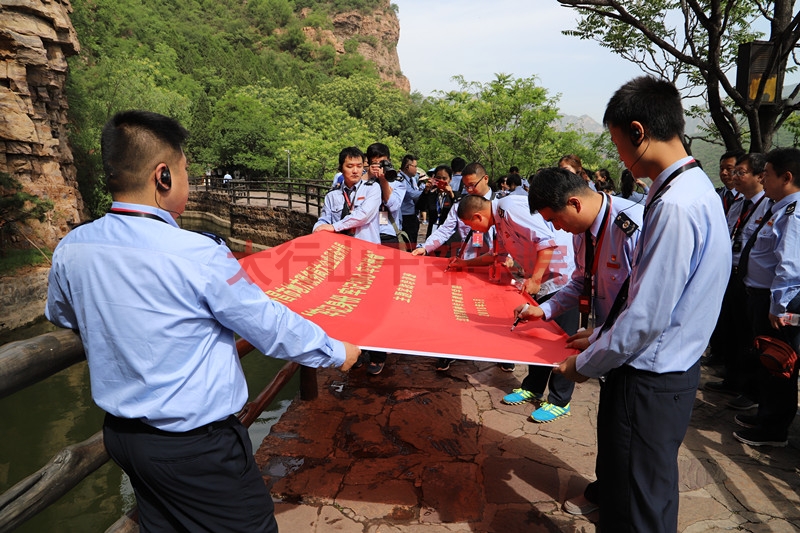 紅旗渠紀(jì)念館不僅是一座以研究、展示、傳承、收藏紅旗渠歷史的一座展館。也是我們學(xué)員感悟“自力更生、艱苦創(chuàng)業(yè)”的紅旗渠精神的一個(gè)重要窗口。學(xué)員們在展館前留念,并進(jìn)行現(xiàn)場教學(xué)