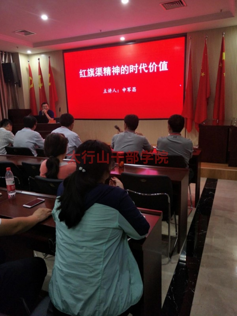 活動(dòng)中,學(xué)員們聆聽(tīng)了林州市委黨校副校長(zhǎng)馬東興《紅旗渠精神及其時(shí)代價(jià)值》的專題講座,馬東興全面解讀了紅旗渠精神,系統(tǒng)闡釋紅旗渠帶給我們的“堅(jiān)定理想信念”、“堅(jiān)持同人民在一起”、“發(fā)揚(yáng)釘釘子精神”等當(dāng)代啟示。