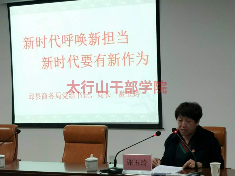 峰峰礦區(qū)經(jīng)貿(mào)工委原書(shū)記杜良盛、邱縣商務(wù)局局長(zhǎng)謝玉玲作分別作了事跡報(bào)告《展現(xiàn)新?lián)?dāng),實(shí)現(xiàn)新作為》和《新時(shí)代呼喚新?lián)?dāng),新時(shí)代要有新作為》。