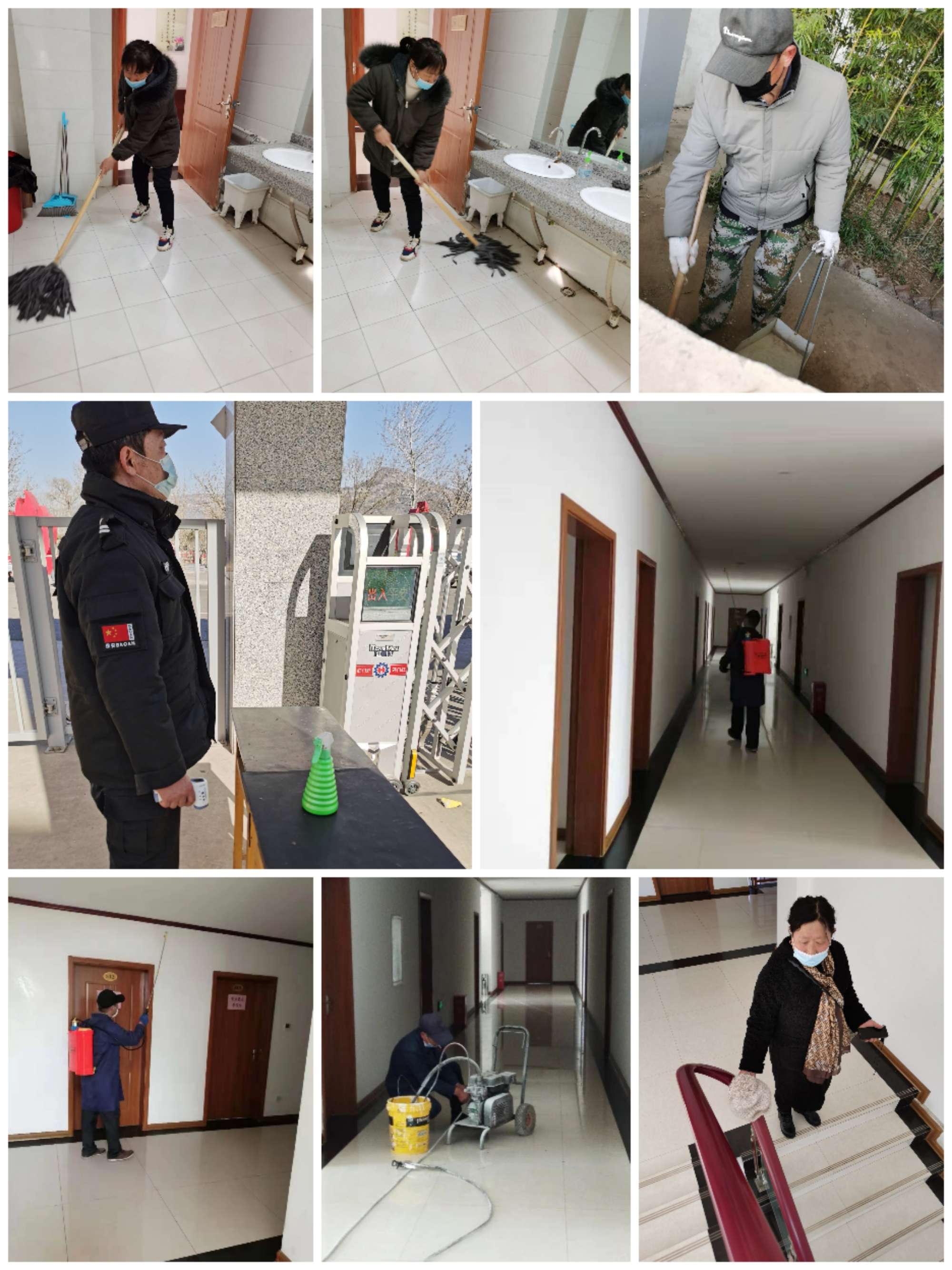打掃、消毒,疫情防控?zé)o死角,做好學(xué)員心中的“老黃?!?。